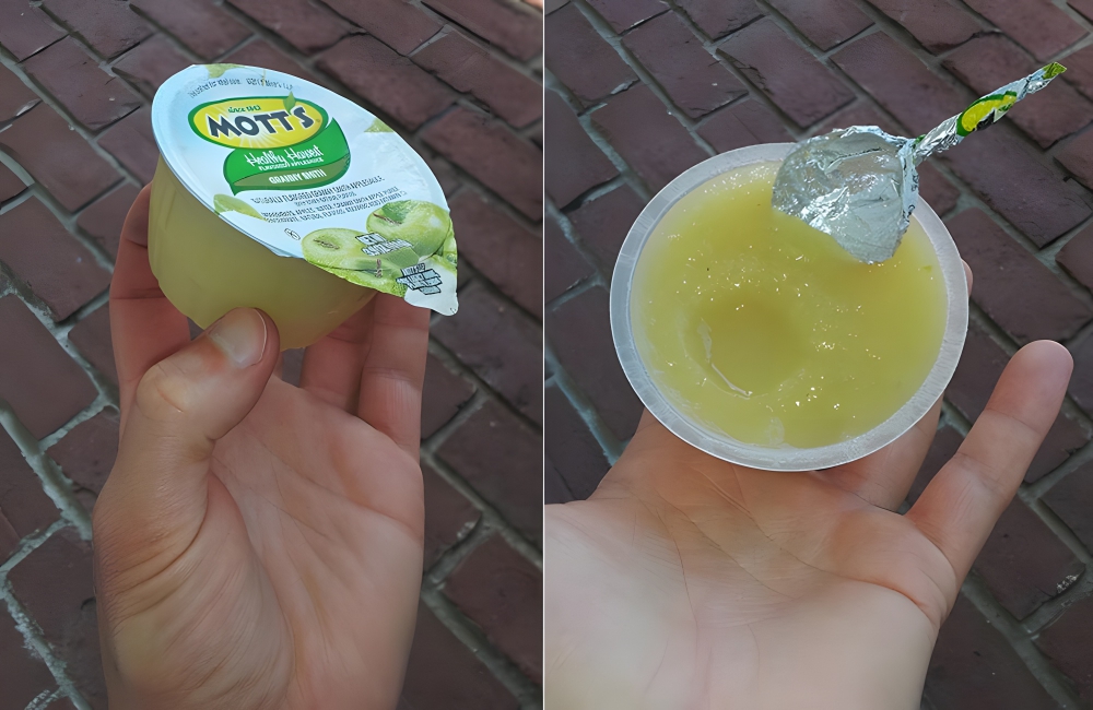 The tinfoil is sturdy enough to hold the applesauce, and you can smooth down the sharp edges. That way, you don’t miss out on your snack. If you’re a big applesauce fan, considering buying in bulk or from budget stores like Walmart to save money.