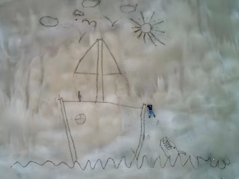 With a basic overhead shot of a child’s crude doodles in the sand, it masterfully conveys the spirit of childhood. It’s obvious to all that this drone shot has a nostalgic feel to it.