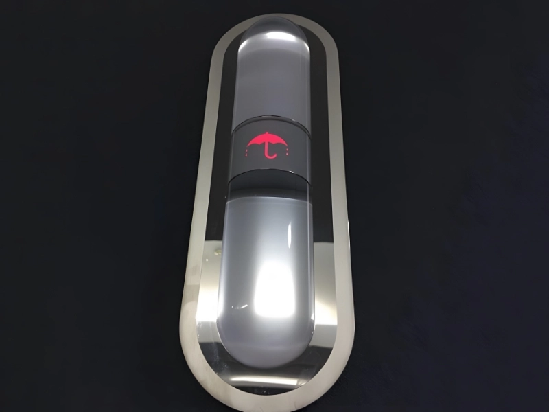 These rain indicators fit inside elevators and have a shape akin to big capsules. When it rains, they turn red, revealing a symbol of an umbrella pouring water, alerting people to prepare their umbrellas. The users can use the service for free, and it has been available for almost a year.
