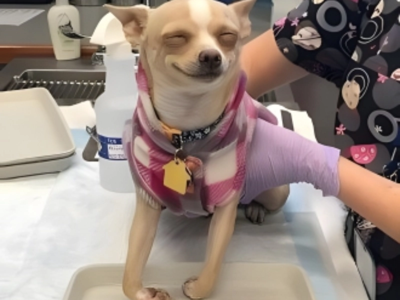 Though he does appear very happy with himself, at least the owners did the responsible thing and brought their dog in for a check-up.