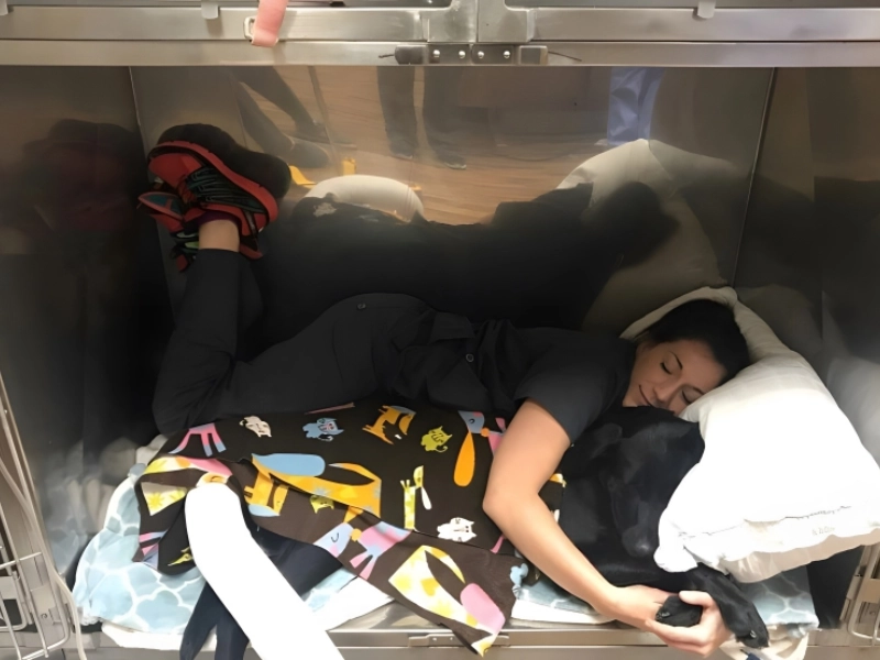 Something tells us the vet would leap at the chance without thinking twice if it were feasible for her to sleep there overnight!