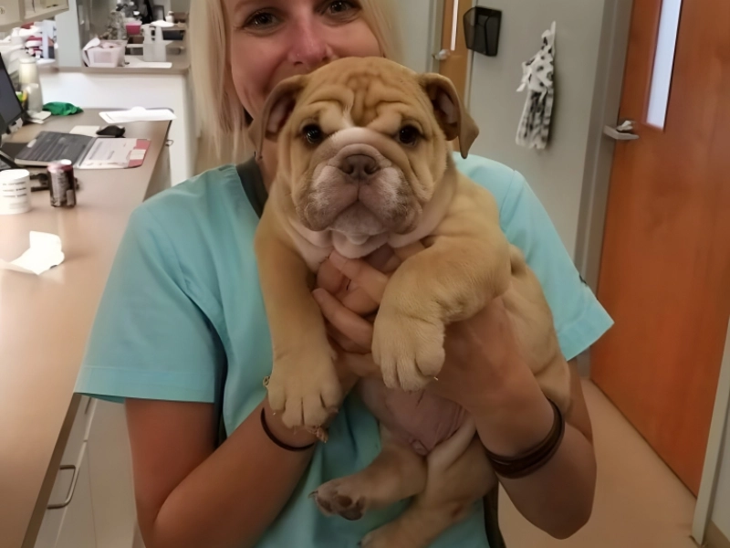 When Norman, the adorable bulldog puppy, paid her a visit, this Vet could not believe how well her day was going. Simply beautiful, this little furball definitely made everyone at the clinic that day happy. From his priceless wrinkled face to his large puppy paws, it must have been impossible for anyone to resist grabbing him and quickly photographing his compelling appeal.
