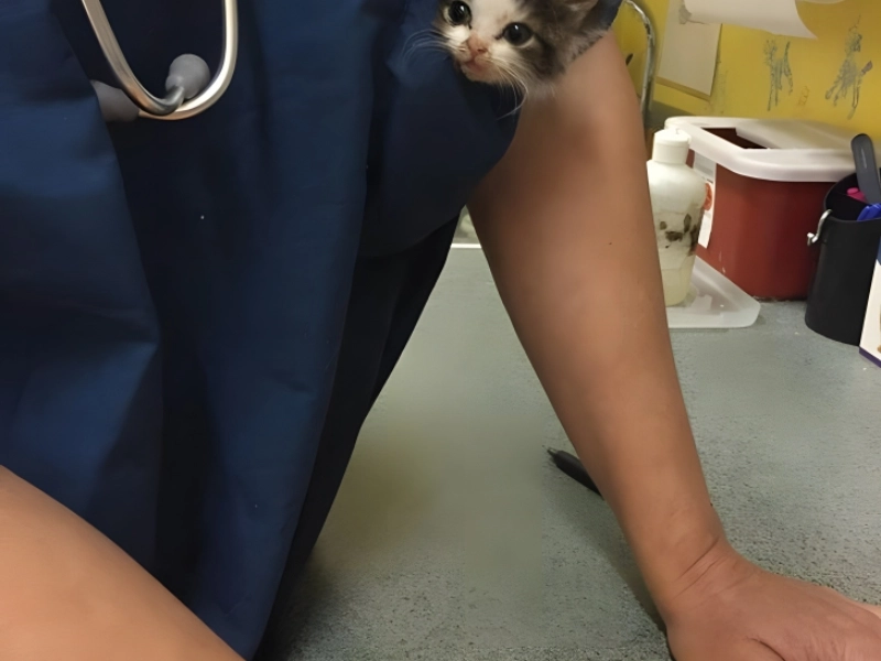 Particularly in cases where they are as small as this little kitty, some pet patients are so small that they might readily go missing. Given his diminutive size, which allows one to carry about, it makes sense that the vet chose to keep him tightly tucked up in the pocket of his scrubs. Who wouldn’t want such a lovely face popping out and looking back at them? This configuration turns out to be the ideal one.