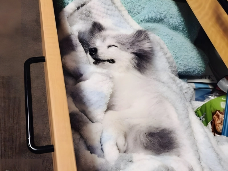 Veterinary labour not only wears the vets but also strains the patients. This puppy clearly was eager to settle into a place for a nice nap. But it so happened to be in the towel drawer rather than a sofa or dog bed. Though his attractiveness more than makes up for it, this pooch may have strange tastes for sleeping quarters.