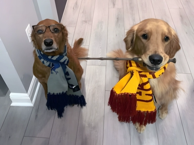 Indeed, over the years Harry Potter has been a magical franchise that has made us very happy. But on Halloween, who want fun? Hairy Pooper and Draco Malfoy can help us to be terrified out of our skin. Of course, the Slytherin dog is already frightening enough without having a pooch-inspired name; nevertheless, this is the first time a Gryffindor has sent us the heebie-jeebies. Who knew a basic dog costume could be so successful? Let’s only hope Hairy Pooper thinks of a chew stick instead of becoming very carried away with that wand. From the finely made house robes to the little wands that seem to have come straight from Ollivanders, these magical canine costumes exhibit absolutely amazing attention to detail. Though the Slytherin dog’s flawlessly slicked-back fur would make Lucius Malfoy proud, the Gryffindor scarf, tightly wrapped around Hairy Pooper’s neck, gives just the right touch of realism. Their dedication to their roles—the Gryffindor pup keeping a noble but slightly perplexed countenance, while the Slytherin puppy precisely catches that aristocratic contempt we have come to anticipate from the house of snakes—makes this pair especially interesting.