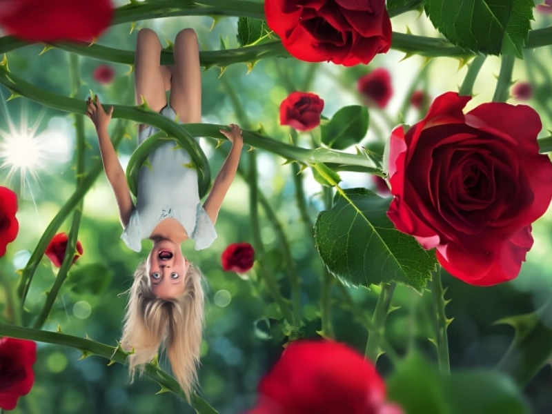 The usually quiet roses in this darkly hilarious perspective on Valentine’s Day customs are reinterpreted as vengeful flora seeking payback for years of ceremonial plucking. After many generations of being cut and delivered as love gifts, the idea deftly anthropomorphizes these gorgeous flowers, giving them agency and a reason for revenge. By means of artistic digital modification, the scene probably changes the usually beautiful flowers into more sinister forms, their thorns serving as weapons of punishment instead of only protecting elements. The caution regarding thorns gives the story a whimsical but sinister note, implying that nature might finally rebel against human use. This unusual viewpoint questions our notion of roses as only ornamental objects and gives these dear but sometimes sacrificed blossoms an interesting layer of empowerment.