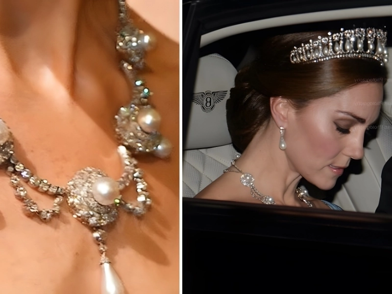 Elizabeth II’s mother, known as the Queen Mother, received the necklace. It was worn frequently and with pleasure by the Queen Mother until her death in 2002. After that, it was kept under lock and key until 2018, when the Duchess of Cambridge was seen donning it at a dinner. This wouldn’t be found at Tiffany’s.