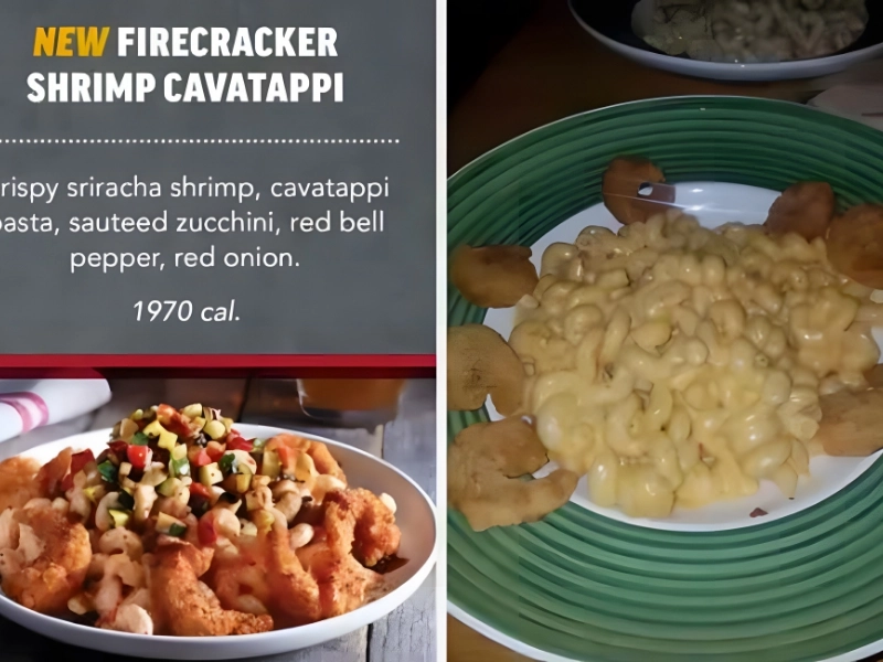 With a dish named “Firecracker Shrimp Cavatappi,” you can be sure it’s going to appear better than it actually does. This 1,970-calorie dish calls for cavatappi pasta, zucchini, sriracha shrimp, and other ingredients.