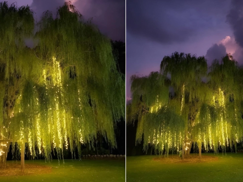 To start, willow trees are really attractive, and they may be found in various media, such as Minecraft and The Lord of the Rings. This willow that seems like a glowberry tree come to life is surrounded by gorgeous fairy lights, creating a scene out of a movie.