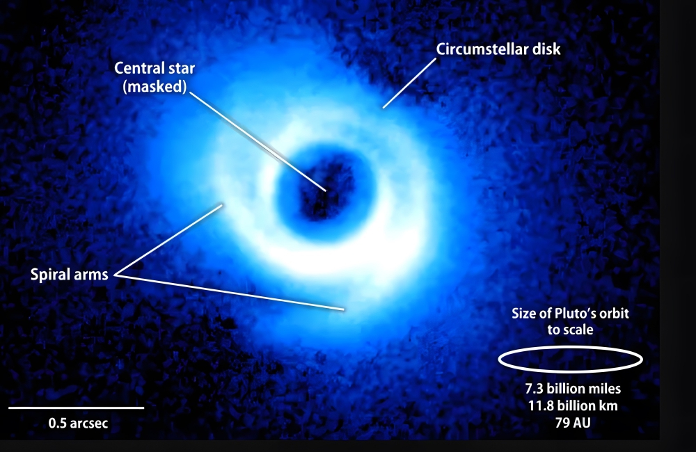 The SAO 206462 star is located about 460 light-years away from Earth, and researchers believe that the arms are related to the existence of planets inside the disk of gas that surrounds the star. The disk of gas is twice as wide as the orbit of Pluto.