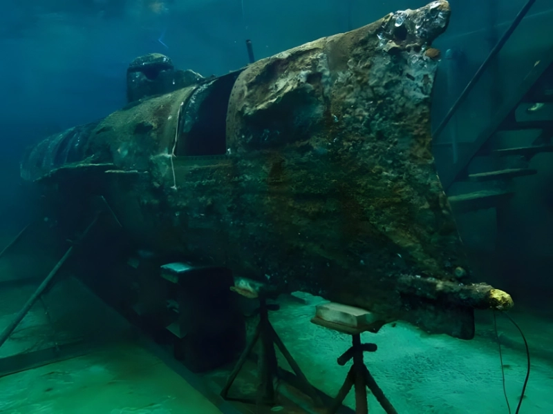 The Mobile, Alabama-built forty-foot submarine sank three times. Three crew members perished when she sank in 1863 while on a test run. A few months later, she sank once more, this time killing eight people. She was raised again. When her torpedo detonated in 1864, killing eight Confederate soldiers, she was unable to withstand her final attack. She was found in 1995, and in 2000, she was dredged up.