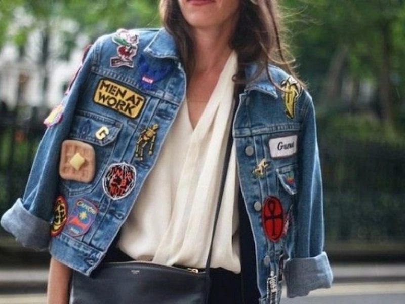 The denim jacket is the most universal item. It must have these characteristics: it must be big, retro (vilification and boiling), and have retro stickers and stripes.
