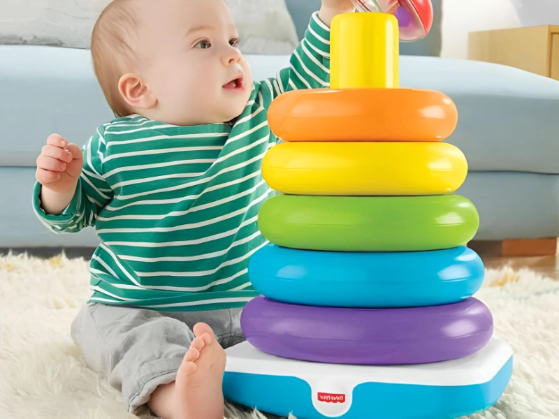 Avec le Rock-a-Stack, Fisher-Price a introduit le temps de jeu à un nouveau niveau de simplicité et de développement des compétences en 1960. Ce jouet à empiler lumineux, qui coûtait 1,29 $, a testé les enfants. motricité fine et intelligence.