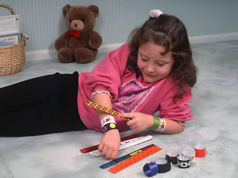 Le bracelet Slap a fait sensation sur la scène de la mode des années 1980 en tant que bijou original et léger. Ces bracelets flexibles, disponibles dans différentes gammes de prix, peuvent être appliqués sur les poignets et enroulés instantanément avec un clic satisfaisant.