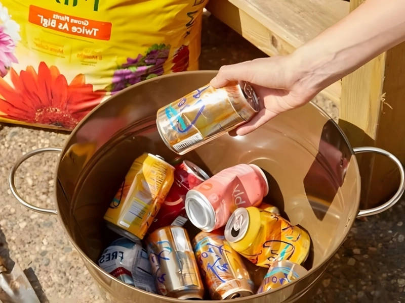 El drenaje mejorará con estas macetas y latas. Además, crearán bolsas de aire en la maceta, lo que promueve un suelo más saludable a través de la aireación. Aunque los aireadores de púas o de tapón se utilizan normalmente para airear el suelo, este método de “hágalo usted mismo” es mucho menos costoso porque probablemente ya tenga latas por ahí.