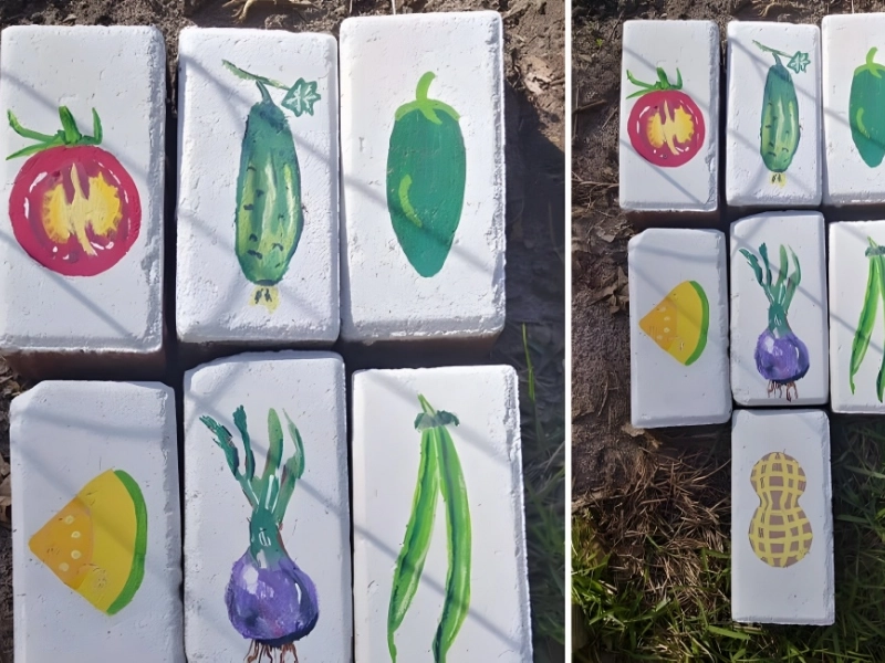 5. Utilice ladrillos pintados para crear marcadores de jardín