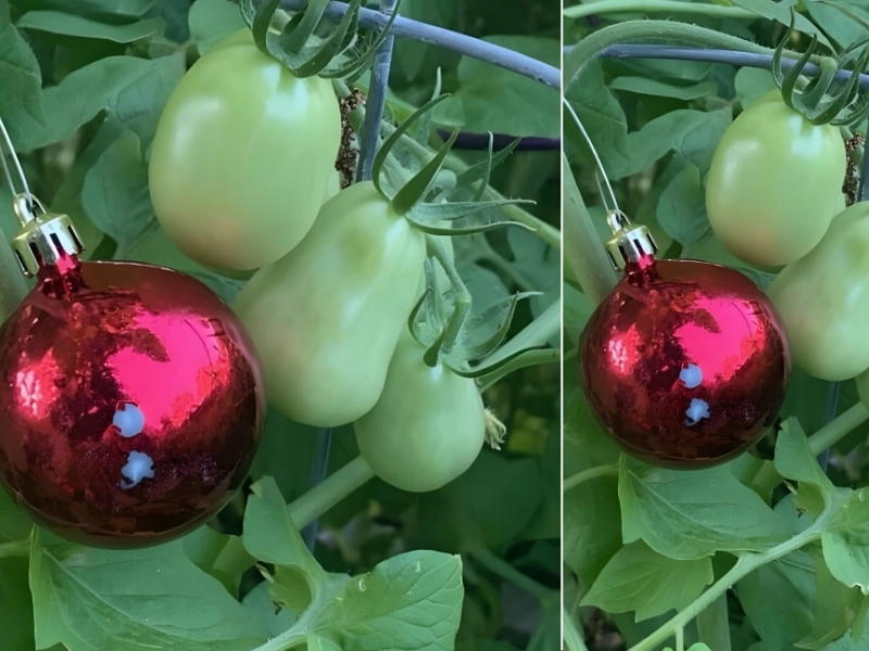Además, puede colocar un adorno rojo junto a sus tomates u otras frutas o verduras rojas. Los pájaros que picoteen la roca o el adorno experimentarán una sorpresa desagradable, si no peligrosa. No regresarán a la zona por esto.