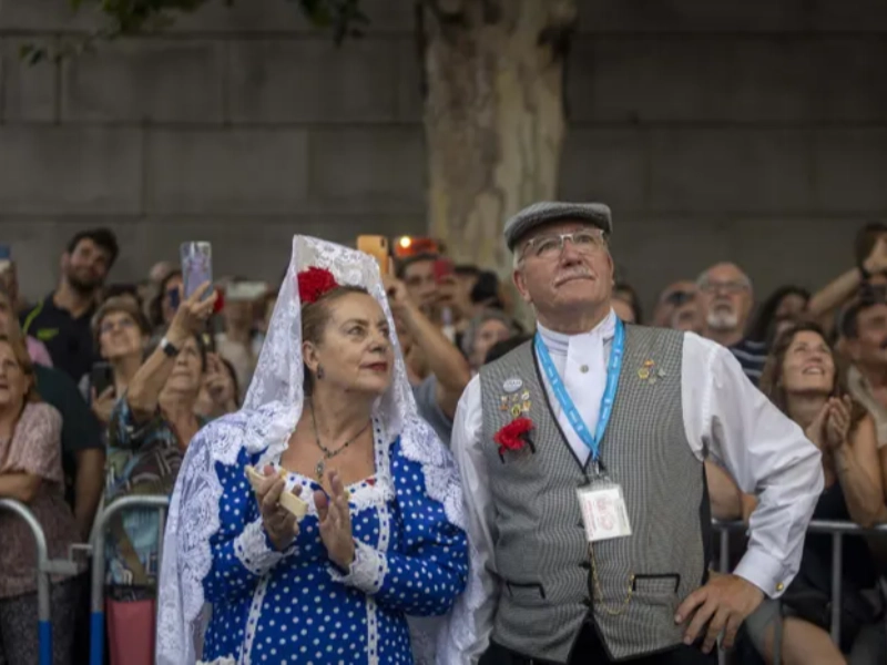 Die Prozession der Virgen de la Paloma zieht durch die Straßen Madrids