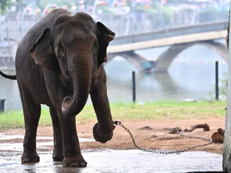 Ein gefesselter Elefant im öffentlichen Zoo von Hanoi. Die Behandlung zweier älterer Elefanten hat Tierschützer in ganz Vietnam empört