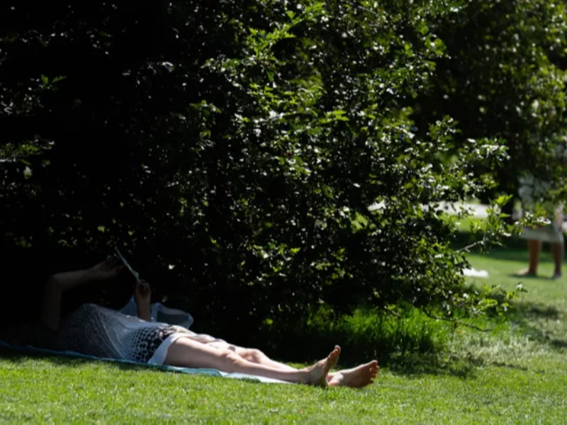 Eine Person liegt im Schatten auf Primrose Hill, London