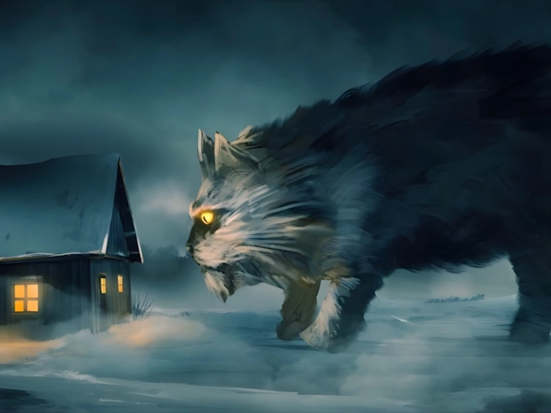 The enormous, ferocious Yule Cat, also known as Jolakotturinn, is unmoved by toys or snacks from Chewy or Petco. The Yule Cat is depressed as it searches for humans to devour over the wintry countryside during the holiday season.