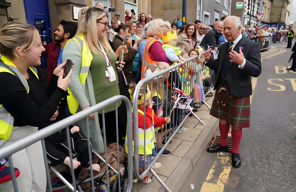 King Charles III during a tour of the market square in Selkirk ©Pool /Getty Images