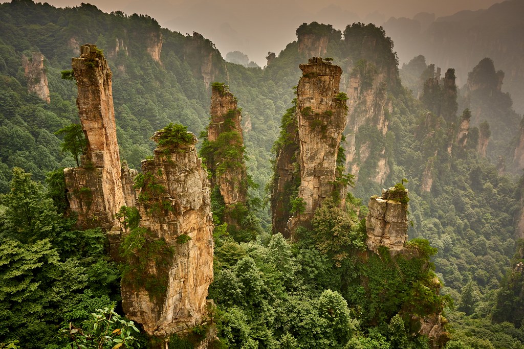Zhangjiajie National Forest Park, located in the Hunan Province of China, is a mesmerizing and otherworldly landscape that has inspired awe and wonder in visitors from around the globe. This extraordinary park, part of the larger Wulingyuan Scenic Area, is renowned for its towering sandstone pillars, lush greenery, and breathtaking vistas. The unique geological formations found here served as the inspiration for the floating Hallelujah Mountains in James Cameron’s blockbuster movie “Avatar,” bringing international attention to this natural wonder.