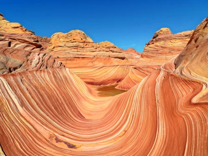 Nestled in Arizona, USA’s Paria Canyon-Verm blu Cliffs Wilderness near the Coyote Buttes, The Wave is evidence of the incredible artistic ability of the natural world. With its unusual geological features, undulating patterns, and vivid colours, this captivating sandstone structure has enthralled guests for years. The intriguing geological processes that moulded the Wave over millions of years adds to its appeal in addition to its visual appeal.