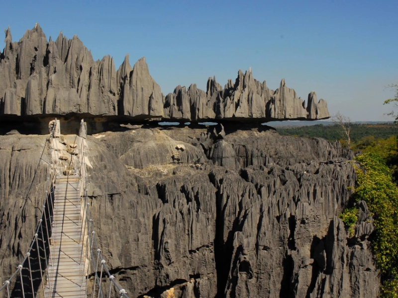 Discovering Tsingy de Bemaraha National Park is a demanding but worthwhile adventure. Moving across the tsingy calls for negotiating a system of ladders, suspension bridges, and little paths. To let guests safely explore this difficult terrain, the park has created a set of via ferrata routes—protected climbing paths. These paths present amazing views and a different viewpoint on the tsingy formations.