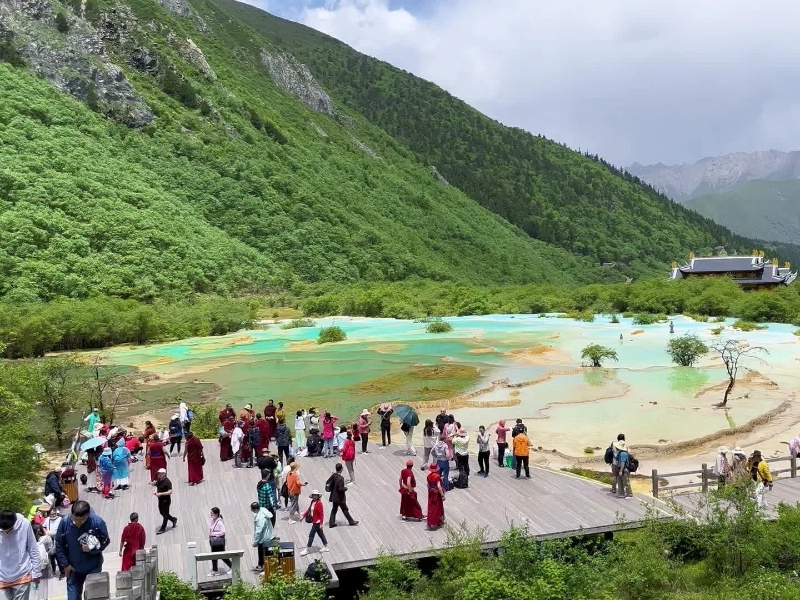 Starting at the top cable car station, this high-altitude path highlights the alpine area of Huanglong’s great biodiversity. The 5-kilometer path winds across large meadows bursting in June with wildflowers. Against the snow-capped mountains, rare varieties of gentians, edelweiss, and primroses produce a natural carpet of colours. The chance to see indigenous species include the red panda in their natural environment and the golden snub-nosed monkey will appeal to wildlife buffs. Although the elevation (over 3,500 meters) requires appropriate acclimatisation, the somewhat level terrain makes this trek accessible. Expert guides give instructional hikes outlining the sensitive alpine ecosystem and its significance for the diversity of the area. The route is a great choice for scientific study and nature photography because of various rest places with interpretative panels about the local flora and animals. Especially remarkable between sunrise and dusk, the trail provides unhindered views of the neighbouring mountain ranges.
