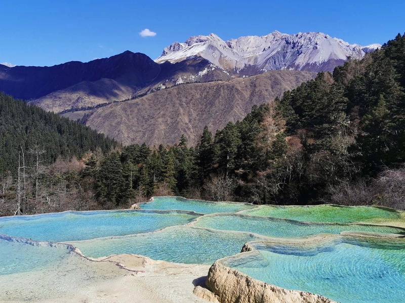 This very difficult 5.5-kilometer path provides the ideal mix of accessibility and breathtaking scenery. Starting at the mid-mountain station, the trail winds over varied terrain displaying many facets of Huanglong’s splendour. The path climbs gently over tiered ponds with distinctive mineral colours and shapes. Hikers come at the well-known “Dragon’s Scales,” where hundreds of tiny pools make an amazing pattern over the mountainside. The path comprises many viewing points positioned deliberately to catch sunrise and sunset over the valley. One highlight is the “Rainbow Pool,” where mineral deposits produce an always shifting range of hues across the day. The road winds through small wetlands supporting a variety of species and groves of historic trees. Local guides often highlight unusual bird species and go over the careful equilibrium of this mid-elevation environment. For most hikers, this path is reasonable even if it is very difficult thanks to consistent rest places and visible trail signs.
