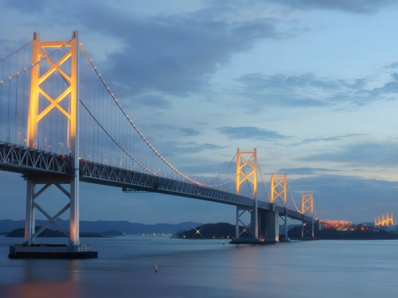 The Great Seto Bridge in Japan, which connected the prefectures of Okayama and Kagawa, spanned an amazing 13.1 km and was nestled among the tranquil waters of the Seto Inland Sea. This architectural wonder, affectionately referred to as the “Pearl Bridge,” is essential for maintaining connectivity between the islands.