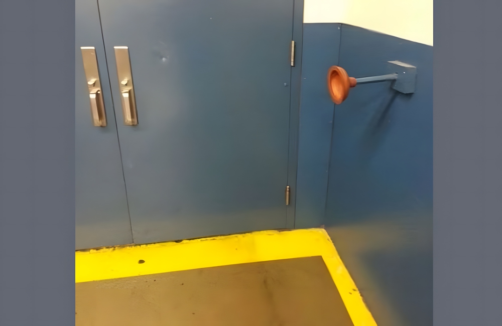 One person was tired of people slamming the door into the wall, and they did what anyone would do—ripped the head off a toilet plunger and attached it to the wall as a makeshift doorstop. Oddly, this fix ends up being more expensive than buying a doorstop.