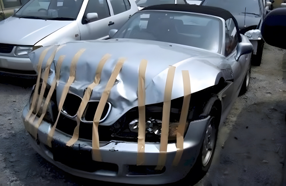 For auto body repair mishaps, which this certainly qualifies as the price can range from $1,500 to $4,000 if not more. While fixing something minor like a broken hood release handle isn’t overly difficult if you have a screwdriver and wire hanger, a huge bust like this needs to go to a professional. Or apparently, you can just tape it.