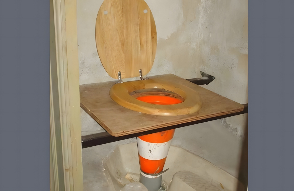 Port-o-potties are horrifying, but this takes it to a new extreme. One DIY toilet consisted of a wooden toilet seat (ew) with a traffic cone in place of an actual septic system. Though the funneling method works, technically, we guess, this clearly is not going to work for anyone living in a civilized society.