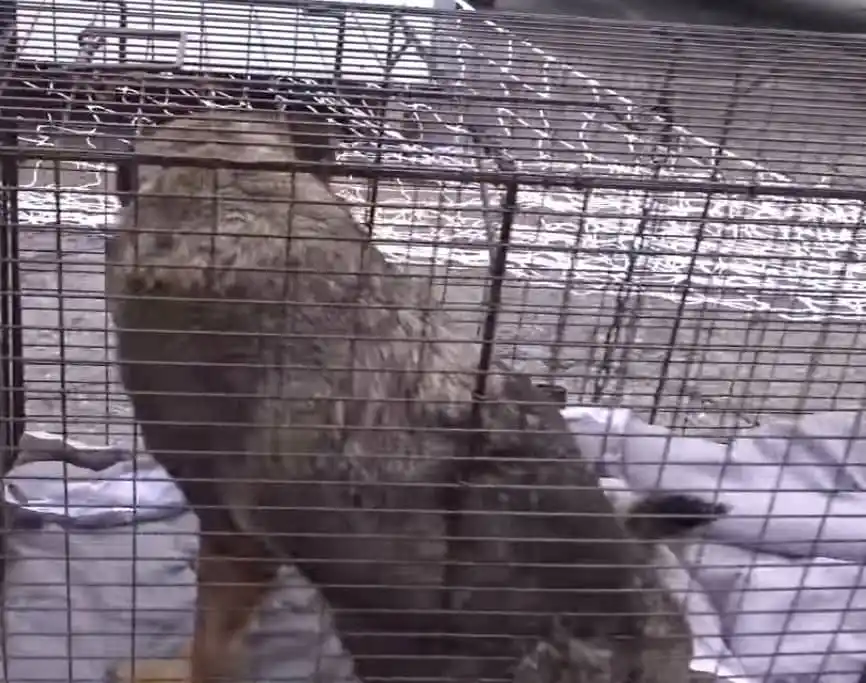 Once Rain settled inside the cage, something remarkable happened—she became noticeably calmer than the rescuers had ever seen her before. Her tense body relaxed slightly, and the fear that had been so evident in her eyes seemed to soften. It was as if the cage, instead of being a source of distress, provided her with a sense of security, a small space where she could finally feel protected from the world that had been so overwhelming.