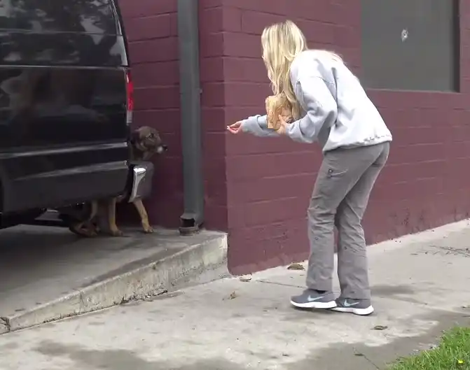 This reaction was a stark reminder of the emotional toll life on the streets can take on animals. For this dog, fear had become its dominant response to the world around it. The rescuers knew they had to act with even greater care and compassion to help her feel safe. Her cries were not just a plea for help but a reflection of the trauma she had endured. It was a powerful moment that reinforced the importance of their mission to rescue and rehabilitate animals in need.