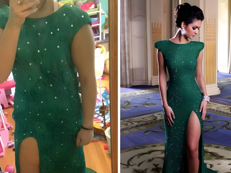 Some individuals swear by the outfits they bought from online merchant DHGate, while others believe they leave much to be desired. In this case, the business based its emerald green design on a Gucci outfit.