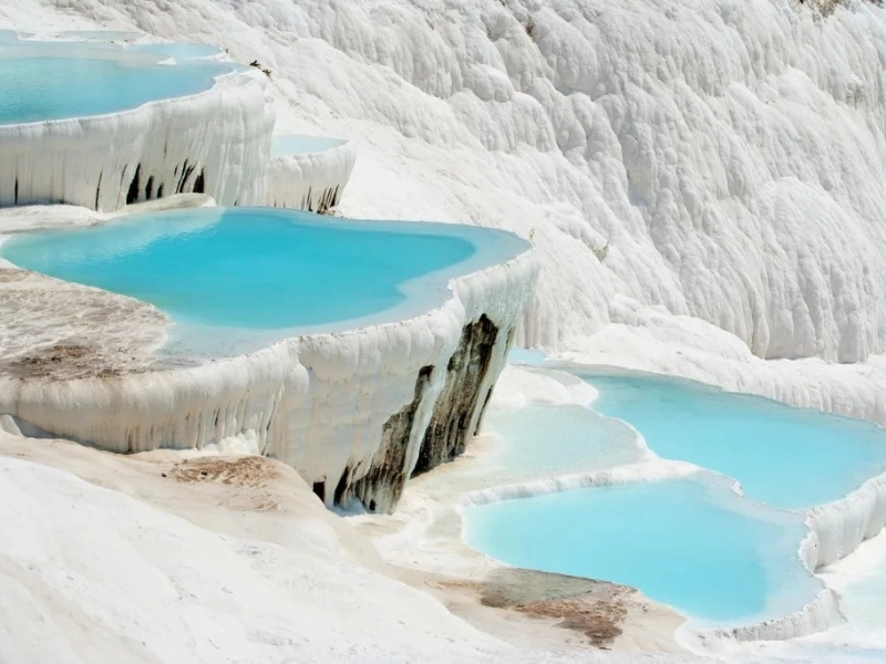 Translating as “Cotton Castle” in Turkish, Pamukkale is a natural wonder in Denizli Province in south-west Turkey. Renowned for its brilliant white travertine terraces created over millennia by thermal springs high in calcium carbonate, this remarkable environment Since 1988, the site—which includes the nearby ancient city of Hierapolis—has been a UNESCO World Heritage Site drawing millions of people each year to marvel at its unusual geological formations and soak in its healing waters.Pamukkale’s famous terraces arise from a delicate interaction among geology, chemistry, and time. The process starts well below ground, where volcanic activity heats fluids high in calcium. These mineral-carrying fluids cool and release carbon dioxide as they surface. Calcium carbonate precipitates under this process to create travertine, a kind of limestone. This ongoing deposition over thousands of years has produced a cascading sequence of terraces resembling a frozen waterfall or, as their name implies, a cotton castle.About 2,700 metres (8,860 feet) in length, 600 metres (1,970 feet) in width, and 160 metres ( 525 feet) in height Pamukkale’s terraces cover. The travertine’s extreme white hue stands out sharply against the surrounding terrain, producing an almost surreal visual spectacular. The terraces are always changing as the mineral-rich streams keep flowing and depositing calcium carbonate, not only stationary structures.From ancient times, the medicinal qualities of the thermal springs feeding the terraces have been prized. Rich in minerals including calcium, magnesium, bicarbonate, and sulphur, the water, which comes out at about 35°C (95°F), is Particularly for persons with rheumatism, skin ailments, and circulation difficulties, these minerals are thought to have therapeutic properties. Recognising the importance of these waters, the ancient Romans founded the therapeutic centre Hierapolis near the springs.Founded in the second century BCE, Hierapolis grew into a bustling spa city governed by Romans. Besides the travertine terraces, the remnants of this ancient city offer an intriguing historical background for Pamukkale’s natural beauties. Visitors can investigate the astonishingly intact theatre, temples, a necropolis, and well-preserved Roman bath remnants. Offering a unique experience combining natural beauty with historical immersion, the Antique Pool—also known as Cleopatra’s Pool—allows modern-day guests to swim among ancient Roman columns dropped into the thermal waters following an earthquake.Pamukkale has ecological relevance outside of its geological formations. The location maintains a special ecosystem suited for the mineral-rich, warm seas. Many different kinds of plants and bacteria flourish in this surroundings, therefore supporting the local biodiversity. Pamukkale is a significant location for ecological study since the terraces and pools generate a sequence of microhabitats with unique traits and occupants.But Pamukkale’s appeal as a travel destination has created major preservation difficulties. Unrestricted construction and access once threatened the delicate equilibrium of the travertine terraces. Hotels constructed on the site diverted thermal waters for personal use, leading to browning of some of the terraces and dry-out of others. Reacting to these dangers, Turkish authorities tightened conservation policies in the 1990s. Hotels were destroyed, and a new mechanism was built to guarantee the even dispersion of thermal waters over the terraces. To reduce erosion and contamination, visitors must now take off their shoes before traversing the travertine.Pamukkale’s natural beauty has been mostly preserved by these conservation initiatives, which also let sustainable tourism be possible. The location is now a model for striking a balance between public access and preservation, showing how tourism can help local businesses economically while nevertheless safeguarding natural beauties.Pamukkale has scientific worth beyond only its outward characteristics. The site offers scholars understanding of travertine formation processes, geochemistry of thermal springs, and long-term consequences of mineral deposition on landscapes. Research done at Pamukkale advance our knowledge of similar geological processes globally and guide conservation plans for other travertine formations.The fragile equilibrium of Pamukkale’s ecology might be threatened by climate change. Variations in temperature and precipitation could influence the flow and mineral concentration of the thermal springs, therefore influencing the rate and kind of travertine production. Development of adaptive management plans to guarantee the long-term protection of this special site depends on constant observation of these changes.Pamukkale is also really important culturally. For millennia, it has been a site of spiritual meaning and healing for different societies. For Turkey today, it still reflects the nation’s rich natural and historical legacy as well as a cause of national pride. The site’s listing on the UNESCO World Heritage list acknowledges not only its geological distinctiveness but also its cultural importance and the need of preservation for next generations.Pamukkale is ultimately evidence of the remarkable beauty resulting from the geology of Earth. Formed over millennia by mineral-rich thermal springs, its brilliant white terraces create a scene nearly too flawless for natural occurrence. The place is quite special because of its mix of medicinal waters, old history, and geological beauties. Pamukkale reminds us of the need of conserving our natural beauties while we confront worldwide environmental problems. In addition to being amazing spectacles, they are priceless tools for scientific research, cultural legacy, and knowledge of the fragile equilibrium of the ecosystems on Earth. The continuous attempts to sustainably manage Pamukkale provide hope and lessons for the 