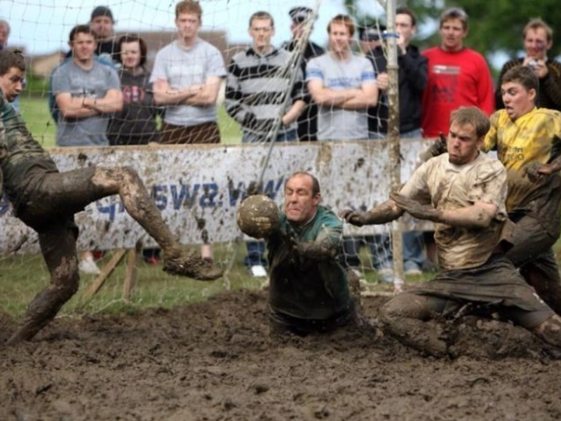 El fútbol de pantano se originó a finales del siglo XX en los pantanos finlandeses y desde entonces se ha vuelto popular en toda Escandinavia y Escocia. El campo de juego, que es un pantano, tiene aproximadamente la mitad del tamaño de un campo de fútbol normal y los partidos constan de dos tiempos de 13 minutos cada uno. Sin embargo, la principal diferencia con el fútbol tradicional es la prohibición de cambiarse de calzado durante el partido.