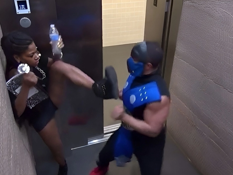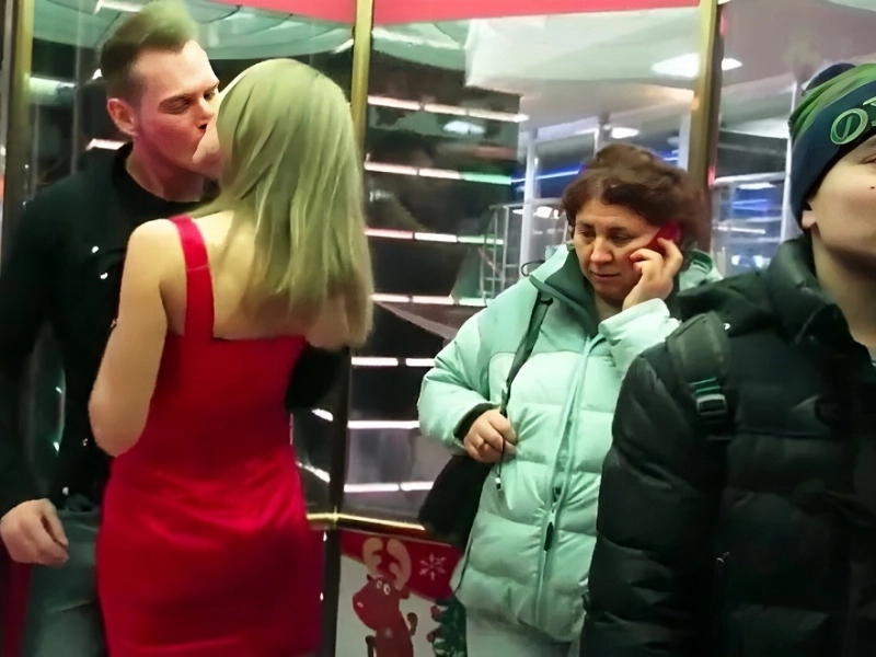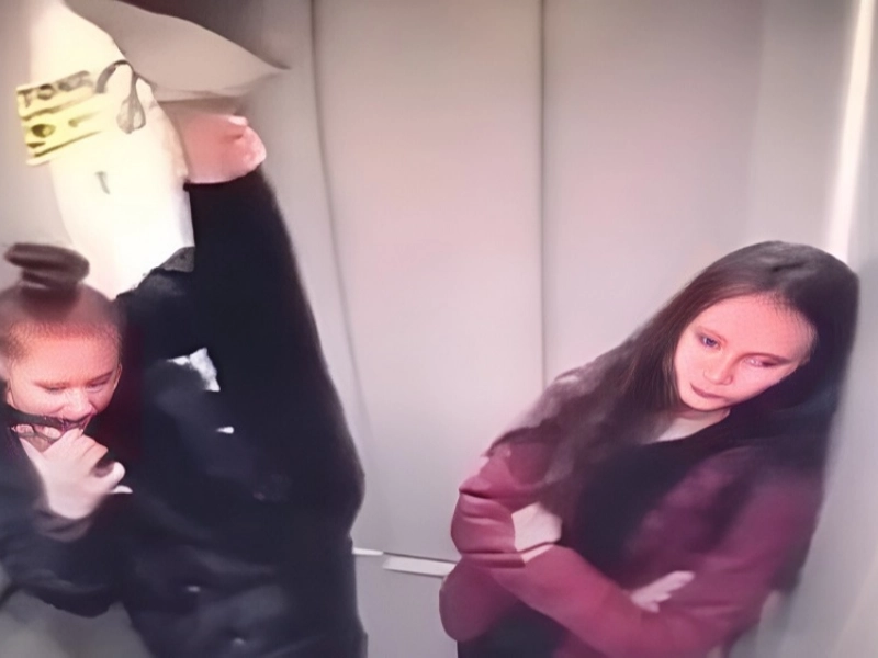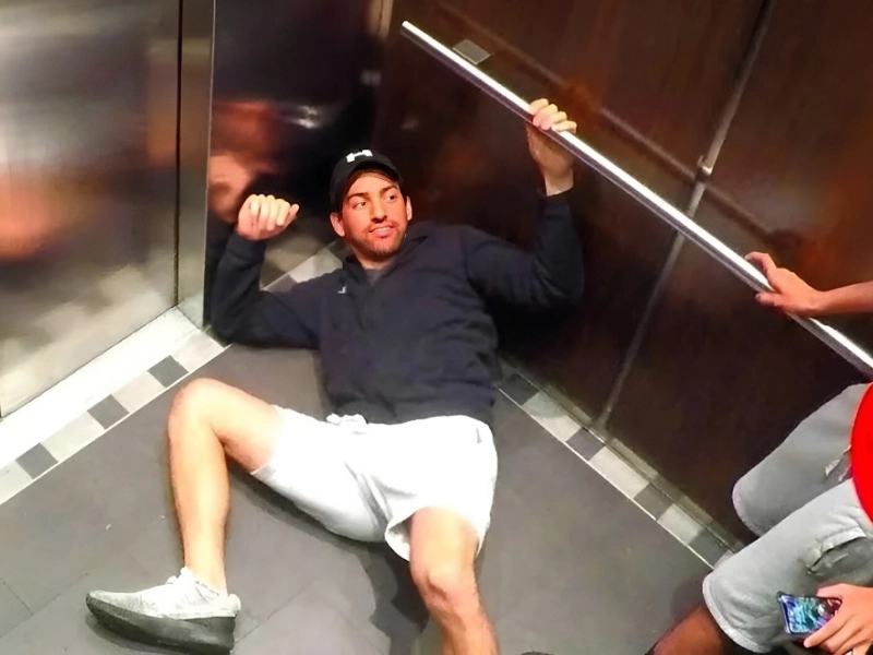 This girl thinks that the elevator is the ideal setting for showcasing her flexibility.