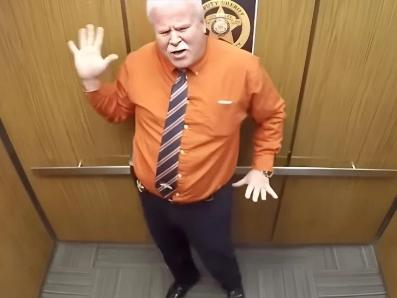 In elevators, even sheriffs enjoy dancing (when no one else is around).