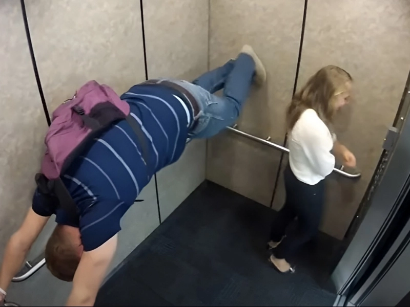 The most absurd, unexpected, and hilarious elevator gags ever seen are featured in this photo compilation that was taken using covert cameras.