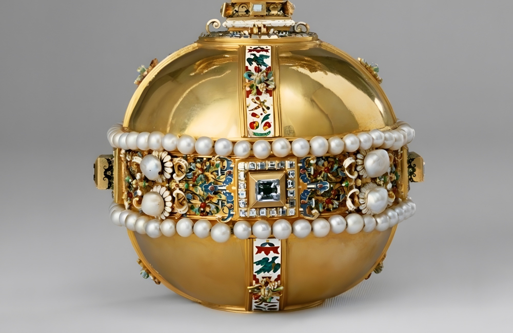 The Austrian Imperial Orb is part of the Austrian Crown Jewels, and it is one of three elements (the other two being a Scepter and Crown) that symbolize the Austrian Royal Family. The Orb is displayed, along with the Scepter and Crown, at Vienna’s Hofburg Palace Imperial Treasury.
