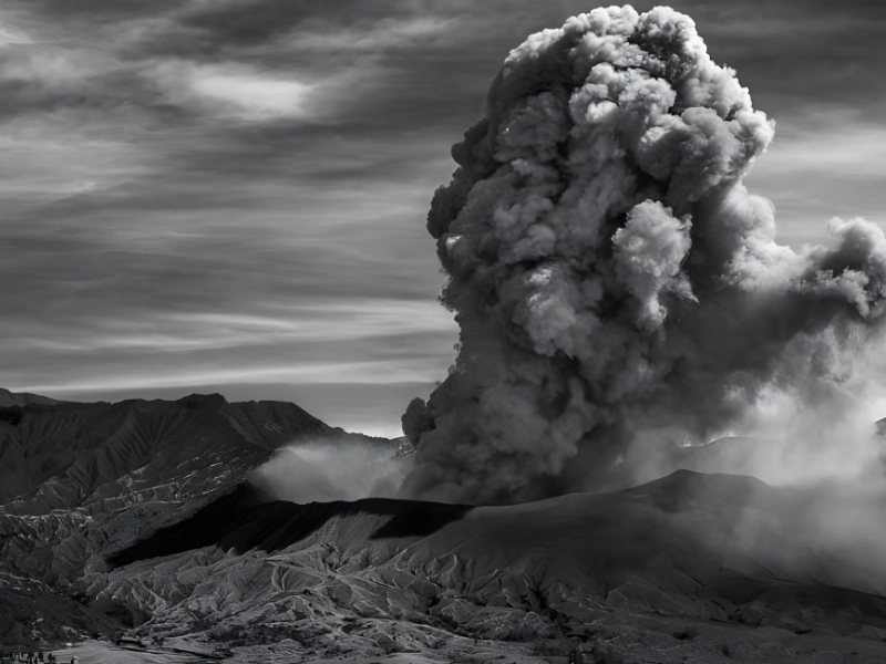 This image of Mt. Bromo erupting was captured by photographer Pradeep Raja, who added a black and white filter for an added sense of unease. Raja entered his photo in the 2017 “Your Shot” competition, and it won an award. The effort required to climb to the top and capture Mt. Bromo’s eruption is not the only reason for this.