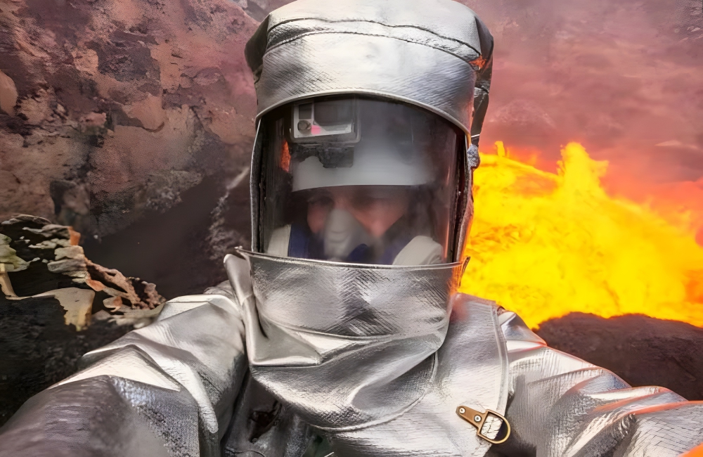 At least this photo was taken wearing the proper protective gear. George Kourounis is a “storm chaser” and explorer for National Geographic and, as anyone who follows him on social media knows, he’s never afraid to take a crazy photo while he’s on an adventure.