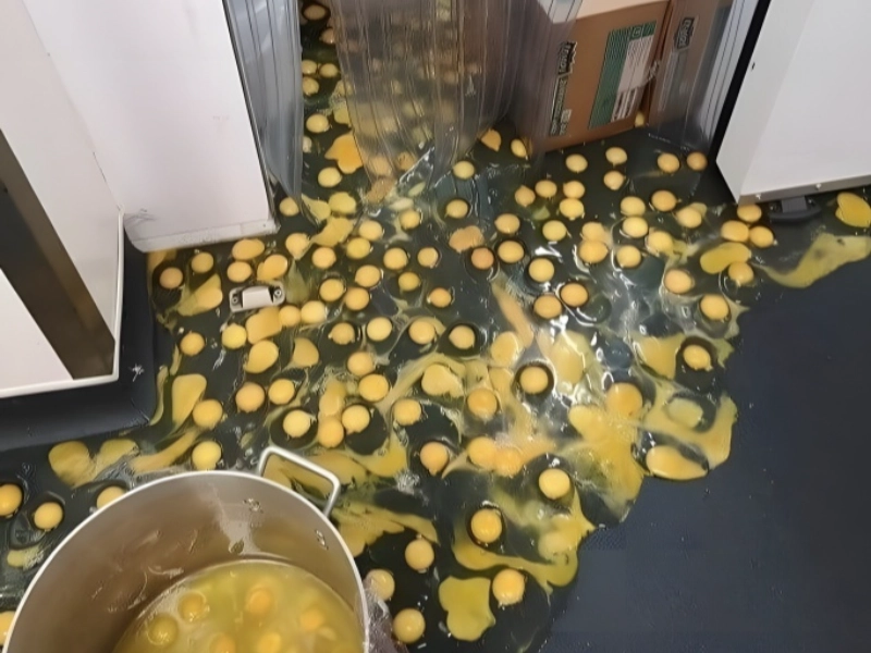 Apart from wasting food, there is no way you could ever eliminate that egg scent from everything. And everything around, even the crates, is likewise now tainted. The scenario is a real egg-pocalypse, with yolks and whites sloppily and powerfully strewn over what looks to be a warehouse or store floor. As hundreds of eggs met their terrible end, one could practically hear the awful “splat.” The underpaid worker, who probably expected to be counting out and on his way home, now has hours of cleaning to do. The work ahead is difficult: not only is the mess to clean, but also handling the unavoidable scent that will remain for days—if not weeks. Apart from the environmental effect of such food waste, this event most likely caused a major financial loss for the company. It’s a sobering reminder of how quickly things can go wrong in the job and how a moment’s inattention can have effects much beyond one’s shift. For years to come, the employee may find herself unintentionally the star of workplace safety videos or the focus of “what not to do” seminars.