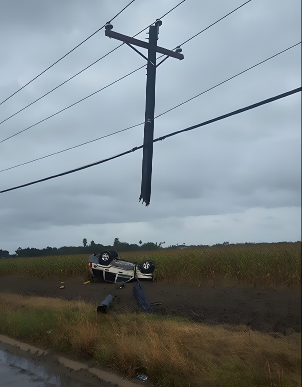 It looks like the majority of an entire town might have lost phone service after this happened, but somehow, most of the wires and poles managed to stay almost completely intact.