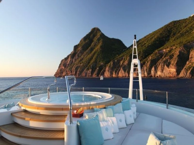 Auf der perfekten Kreuzfahrt können Sie zu einem makellosen, mit Sprudel gefüllten privaten Whirlpool schlendern. Die salzige Luft peitscht Ihre Haare, während Sie tiefer in Ihren Sitz sinken, die Augen schließen und den Wellen lauschen. Das Wasser hat die perfekte Temperatur. Vielleicht kommt Ihr Lebensgefährte zusammen mit ein paar Freunden und etwas köstlichem, gekühltem Sekt vorbei.