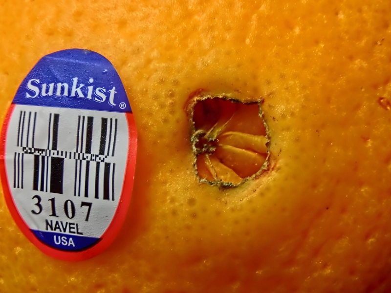 They’ll have numbers on them. In the event that there are four numbers and the first one is “4”, pesticides were sprayed on the fruit. In the event that there are five digits and the fruit was cultivated organically, the first digit will be “9.” In the event that there are five digits and the first digit is “8,” the fruit was genetically altered while it was developing.